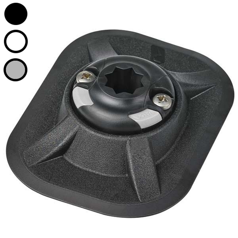 Thankfully clever company RailBlaza has a solution. You start with Railblaza's advesive RIBPORTS or RIBMOUNT CLEAT PORTS. These bond to PVC, hypalon, fibreglass and aluminium using a 3M VHB self-adhesive pad.